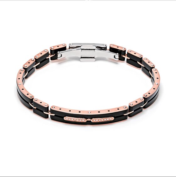 Bracciale in ceramica nera, oro rosa 7501000 diamanti Ct 0,11. chiusura in acciaio
