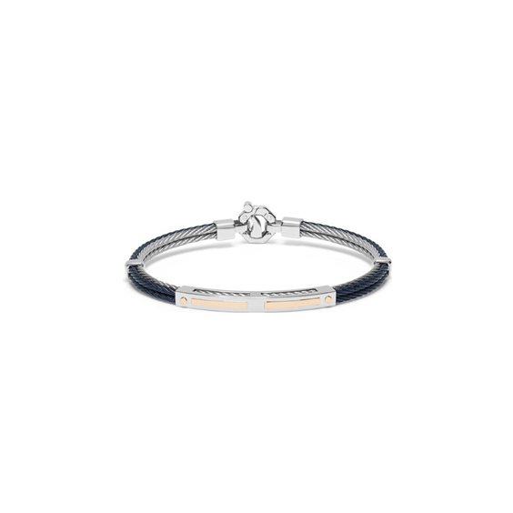Bracciale in stainless steel PVD blu, Oro rosa 750‰. Chiusura ottagonale con Diamante bianco P.Ct. 2.