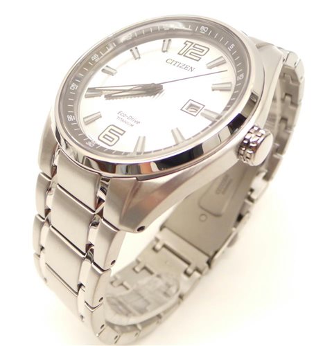 Orologio Solo Tempo. Cassa in Super Titanio Ti-IP spazzolato(5 volte + resistente del normale titanio 40%+leggero dell'acciaio) ,fondello a vite, lunetta e corona lucide, Ø 42mm. spessore 10,8mm. ansa(corpo bracciale) 23mm.Movimento Eco-Drive a carica luce infinita con riserva di carica di 8 mesi,funzioni ore minuti secondi data. Vetro zaffiro. Quadrante bianco, lancette ed index lucidi e luminor. Bracciale regolabile con chiusura deployante a due pulsanti in Super Titanio Ti-IP spazzolato e lucido. Impermeabile 10 Atm. Peso 97 grammi.