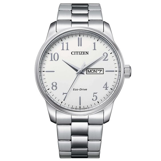 Orologio Solo Tempo Uomo Collezione Classic. Cassa e bracciale in acciaio 316L lucido e satinato con fondello serrato a vite. Movimento Eco-Drive a carica luce infinita con riserva di carica di 180 giorni. Quadrante bianco con giorno e data, cifre arabe e lancette acciaio lucide . Vetro minerale. Bracciale in acciaio regolabile lucido e satinato, chiusura deployante con pulsanti . Impermeabile 10 bar (atm).