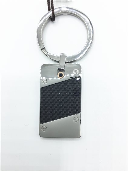 Portachiavi in acciaio lucido con inserto in fibra di carbonio e zirconia nera